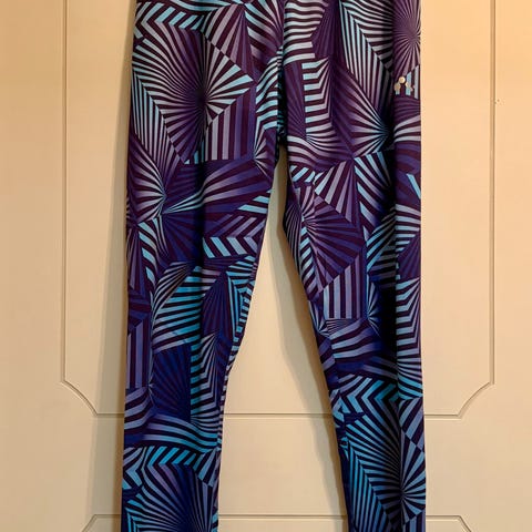 Som ny Fabletics blå med navy leggings med blomster design størrelse M. De er veldig stretchy og passer fint til hverdag og trening. De er litt tykkere en standard leggings derfor anbefaler de til vår/høst/vinteren.