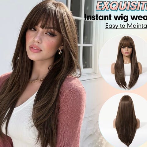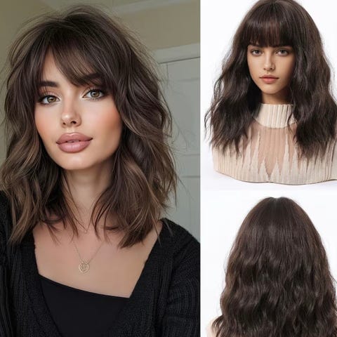 Mørkebrun Parykk med Lugg, Stilig , 35.56cm