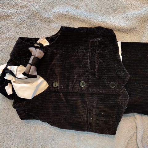 Pentøysett Str 86. 2 skjorter(ene står 92 på,men er lik i str som de andre i str86). 1 sort dress bukse, 1 vest, 1 slips. Alt er pent brukt. Pakken kan ikke deles opp.