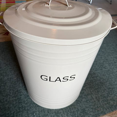 Pent brukt . Bøtte med lokk . Hvit stål