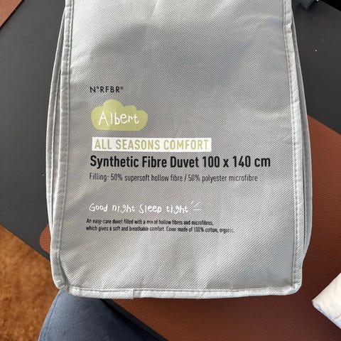 Ble kjøpt feil, skulle ha større størrelse. Ble likevel brukt en kort periode før rett putestørrelse ble kjøpt.