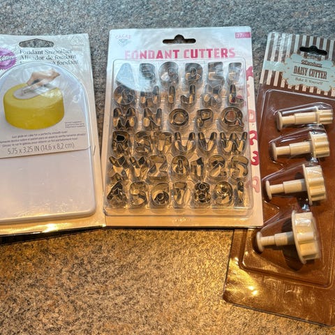 Selger 6 silikon utrykkere til fondant/marsipan, 1 silikon sommerfugl bord, 1 trykker som man kan bytte med 3 ulike mønsters. Noen helt nye. Noen brukt 2 ganger.