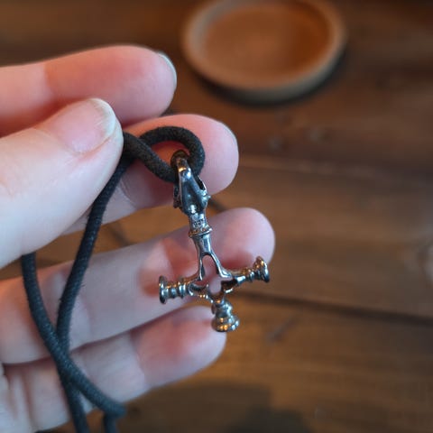 Samling lot med mange kjeder med anheng kors gotisk ?
