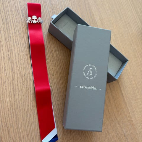 28 cm langt sløyfeband i rødt, Hvitt og blått. 17. mai-sløyfen varer i generasjoner og er ei fin gave til store og små. Passer til f.eks konfirmasjon eller annen gave.