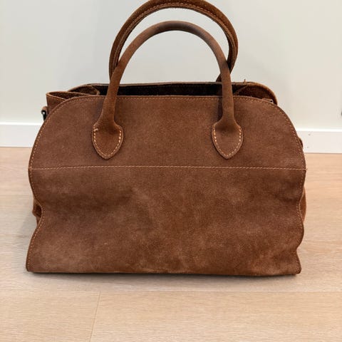 Fin romslig veske med flere rom fra Maanii by Adax. Vesken har ett par ørsmå bruksmerker på forsiden og noe misfarging i stoffet i ene lommen (har nok lekket fra en vannflaske). Bortsett fra dette fremstår vesken som pent brukt. Må ca 35x27 cm.