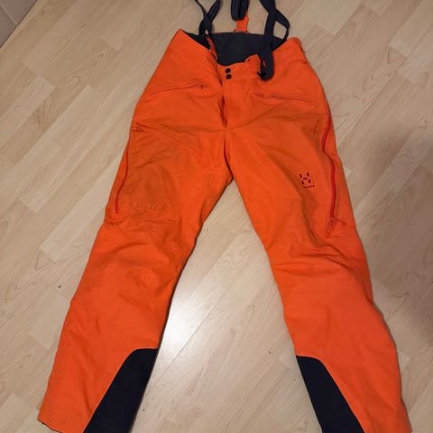 Haglöfs Line pant - skibukse / skallbukse med seler i str. S selges. Buksen er i god stand, men har noe slitasje på knær samt nederst på ett bukseben.