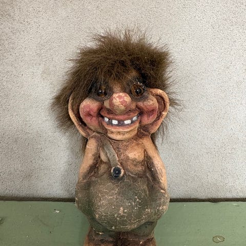 Stort orginalt 3 hodet Fosse troll, høyde 46 cm uten hår:) ,maks bredde 25 cm og dybde 17/18 cm.