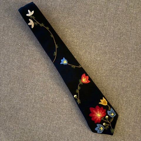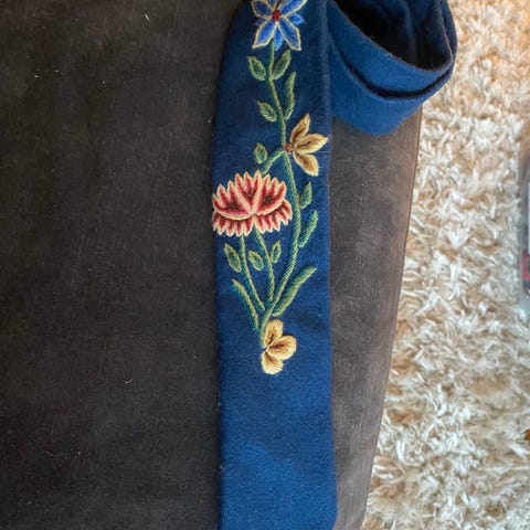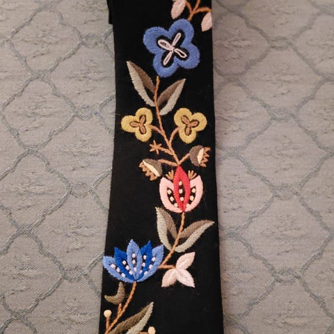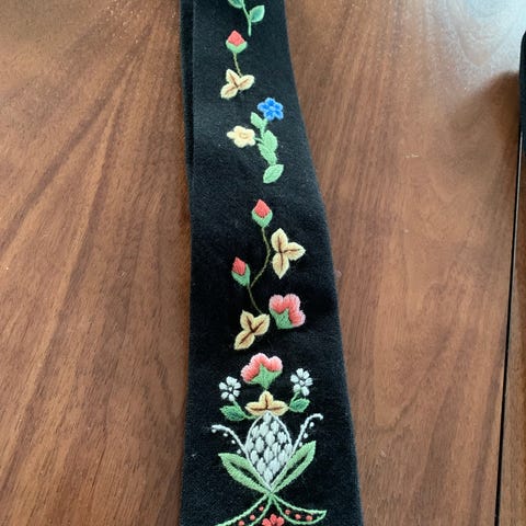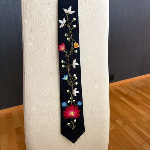 Sptzbrgn bunadslips til svart Valdresbunad selges fordi mannen har fått seg egen bunad. Brukt fem-ti ganger, pent brukt. Boksen følger med.
