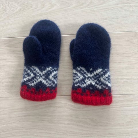 Hjemmestrikkede Marius votter til dame