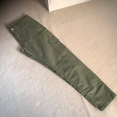 Stilig, kritthvit bukse/jeans i litt kortere modell - selges billig og lite brukt! Str 10P skal i følge tabell (skjermbilde) tilsvare W29-30.