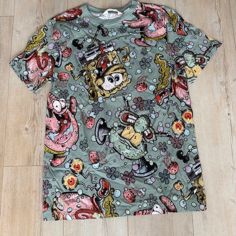 Stripete lys blå og hvit H&M-skjorte med små «dots» selges, str 164