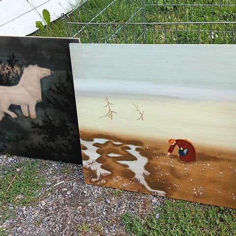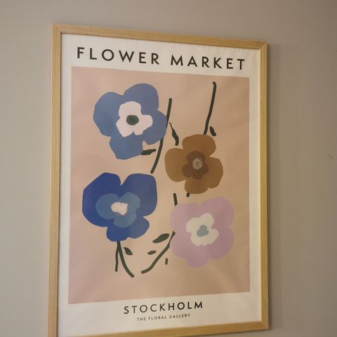 "Fjord" av britiske Beth Wintgens. Jeg kjøpte dette innrammet i en bruktbutikk, så er usikker på detaljene rundt det. Rammen har fått en skade på siden (se bilde), men kan fås med gratis om ønskelig. 30x40 cm.