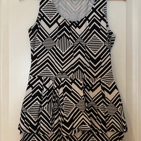 Fin kort kjole fra Bye Bye. Står ikke størrelse på, men passer en S (eller M). Mykt stoff: Viskose/elastan. Hentes eller sendes mot frakt.