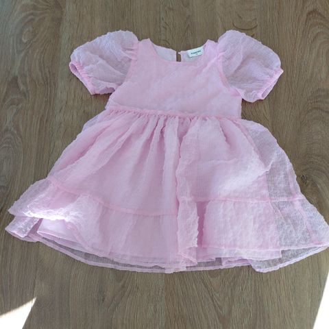 Tornerosekjole str 92/98. Godt brukt, men mye bruk igjen. Fant en liten flekk(se bilder). Ikke prøvd å få den vekk. Selges derfor billig.