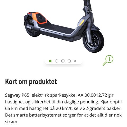 Jeg ønsker å selge min fine Segway, som på også er kjent som en elektrisk stående scooter. Jeg har brukt det veldig lite/nesten ikke, og derfor er det ønskelig å selge det.