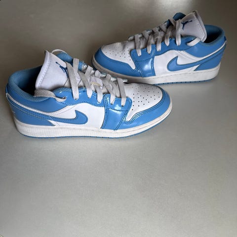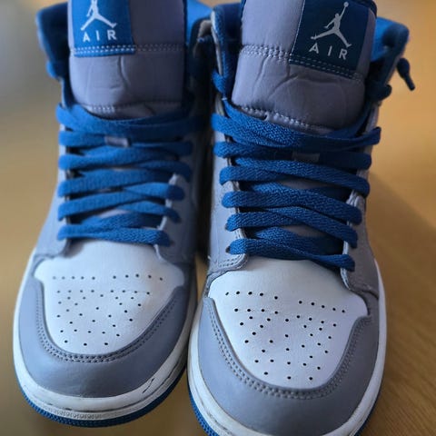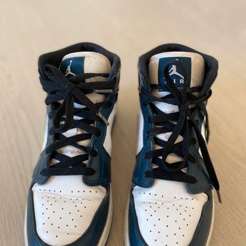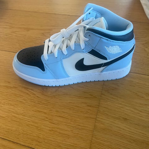 Hvite og lyseblå Air Jordan Mid
