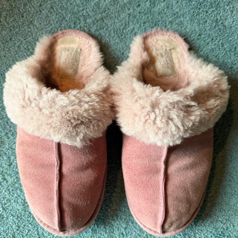 pent brukte rosa tøfler i kunstskinn, str 36-37. Selges da de raskt ble for små til en stadig voksende ungdom 😊