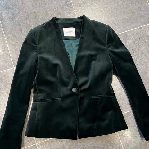Klassisk, enkeltspent blazer fra Riccovero i størrelse 38 med en lett innsvinget silhuett.