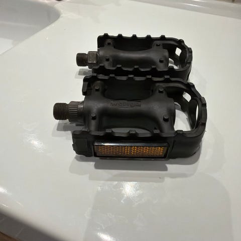 Ubrukte pedaler til barnesykkel. Kjøpte feil type pedaler til barnesykkelen, som var str. 20". De passer sikkert til andre størrelser også. Se bilder for mer detaljer.