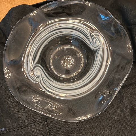 Meget pent rosa pressglass fat fra Hadeland i mønsteret Stord.