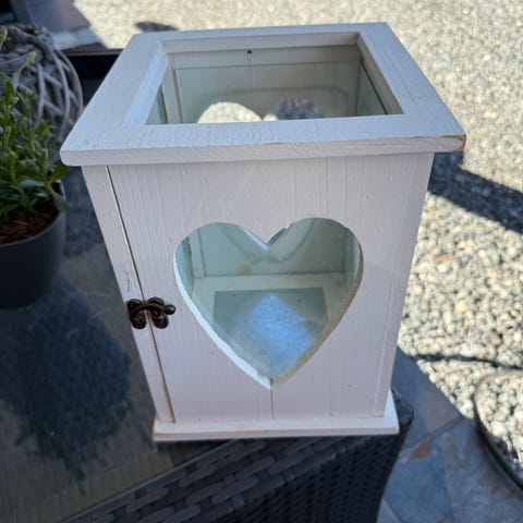 Flott lykt med glassvinduer. Sølvfarget. Høyde 48cm
