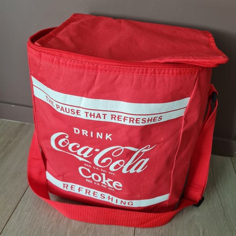 Rydder i boden og kvitter meg med ting fra jeg var yngre. Fikk denne av coka cola da jeg vant en konkuranse før vm i paris 1998. Så denne er nesten 30 år gammel. Bagen har en liten rift inni og en stropp er litt slitt. Glidelås fungerer. Baggen kan sendes.med posten postnord og helt hjem. Se bilder