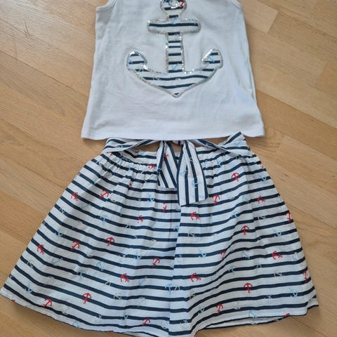 Supersøtt sett, skjørt og topp i fine farger. Str 11- 12 år.