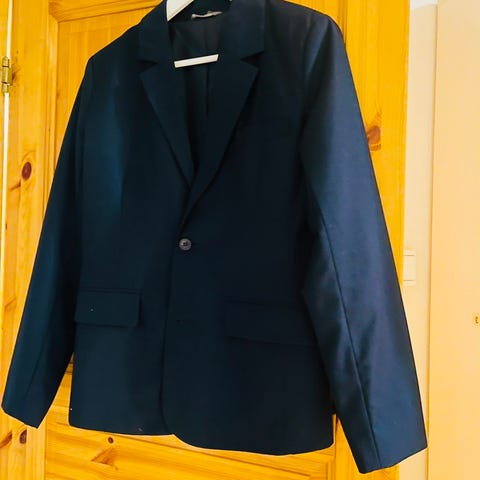 Skjorte med mandarin krage, passer best som str 41. Brun farget blazer str. 46. Lite brukt. Ingen kvittering.