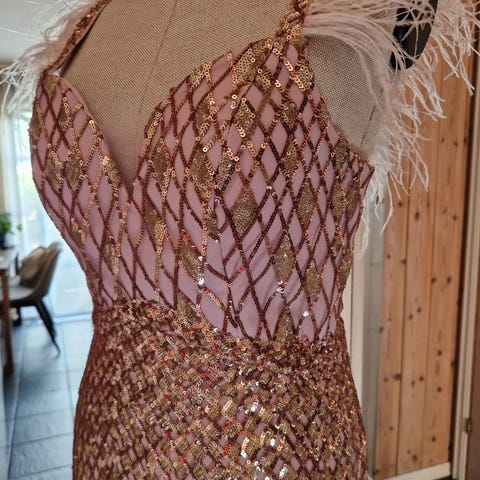 Denne kjolen er laget av myk chiffon og har en flatterende V-hals og delikate flagermer for en romantisk touch. Krystall detalj på bak.