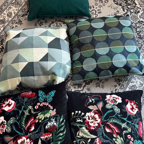 Mål: 35x35 cm. Dunputer inni.