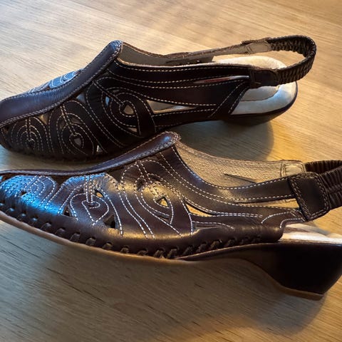 Veldig fine gladiatorsandaler i skinn med perledetaljer fra Pikolinos som kun er brukt en gang.