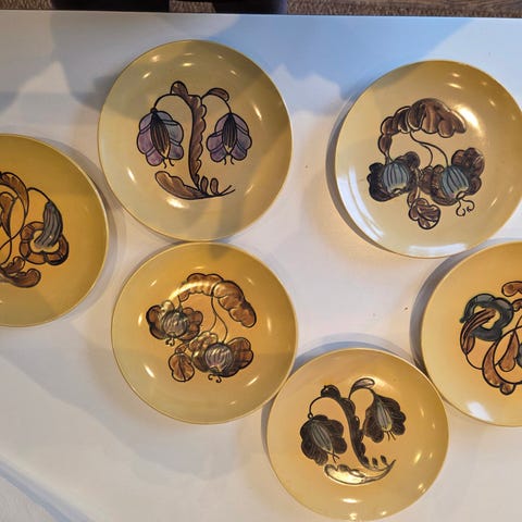 5 asjetter, D 18,8 / 21,3 cm Kr. 30,- pr stk