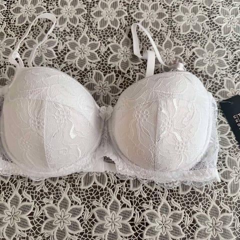 Selger helt ny blå/hvit bh med bøyle fra Dorina for 120 kr.