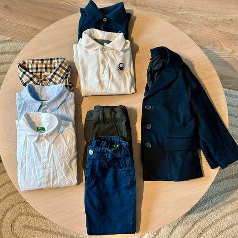 Klespakke 3 bukser, 2 T-skjorter, 1 dressjakke sort