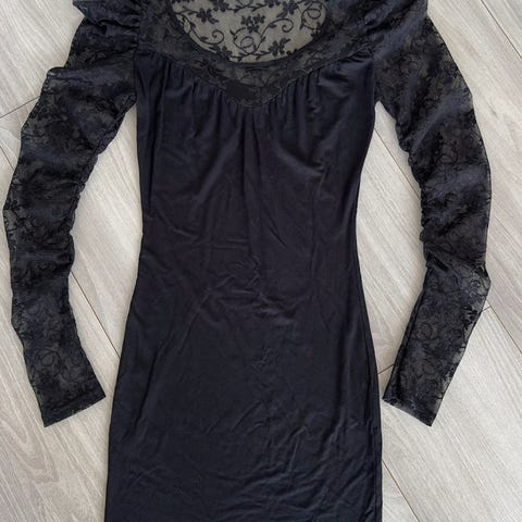 Svart bluse fra Edge med blondedetaljer og blondeermer.
