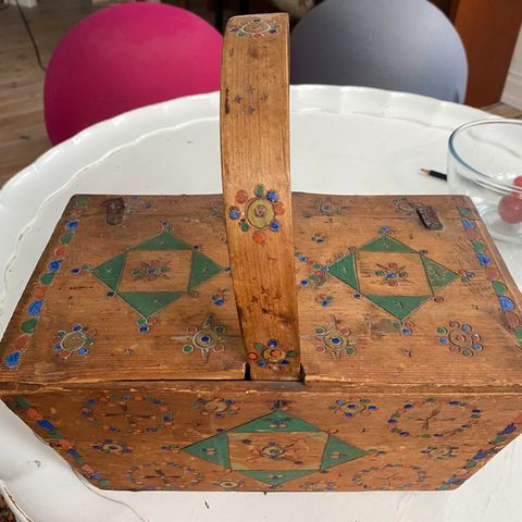 Sjarmerende antikk flettet kurv med rester etter blomsterdekorasjons maling