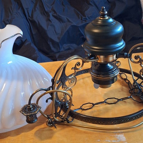 Parafin pendellampe med strøm.