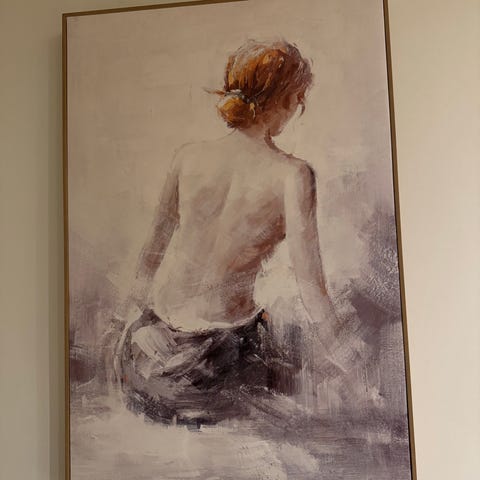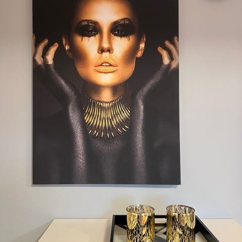 Lerretsbilde av kvinne i gull og sort fra Bohus