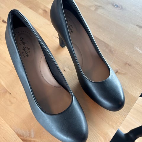 Skoene fremstår som veldig pent brukte, mindre kosmetisk slitasje under, ellers veldig pene.