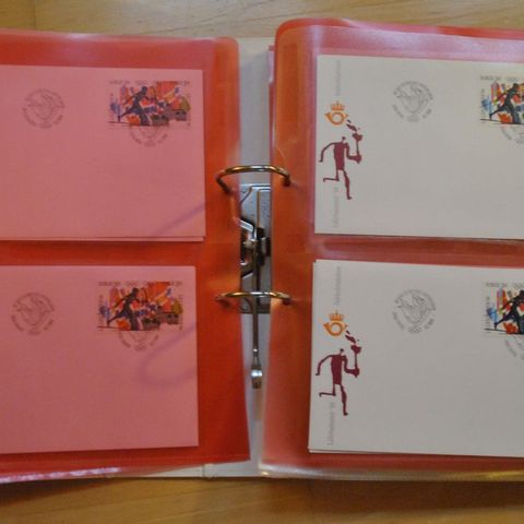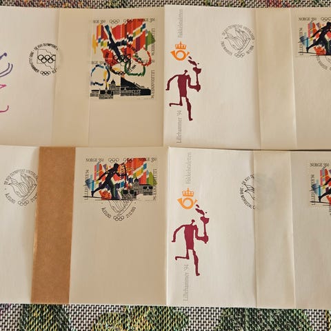 Konvolutt utgitt i forbindelse med Fakkelstafetten før OL på Lillehammer 1994. Stemplet med spesialstempel LEVANGER 21.1.1994 og med signatur av ARNFINN BERGMANN, olympisk mester i hopp i OL i Oslo i 1952 og TORALF ENGAN, olympisk mester i hopp i OL i Innsbruck 1964.
