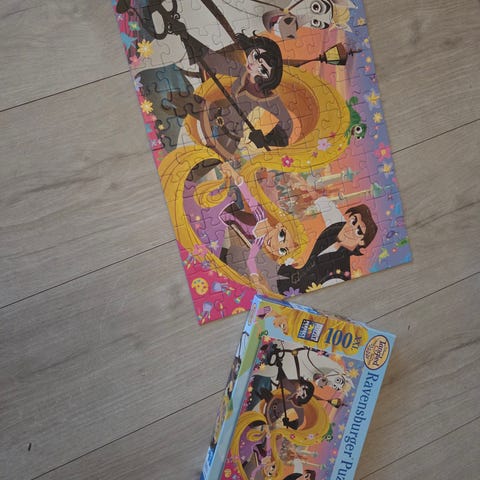 Aladdin puslespill. Selges billig pga 2 brikker er brekt, men limt. Stort puslespill med store biter. 100 brikker.