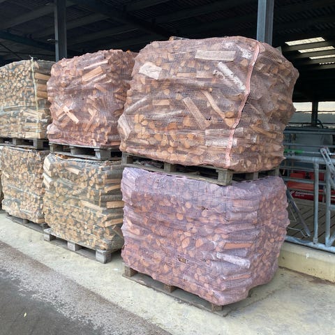 60 liter sekker kløyvd i april. Ren bjørk av god kvalitet.