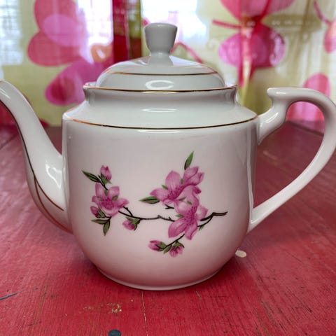 Gammel asiatisk tekanne, litt slitt i gullkantet på lokket. Eller hel i porselenet.