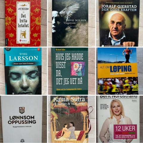 En mengde bøker i ulike sjangre