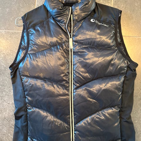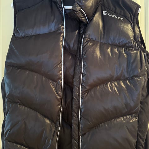 Lute brukt dunvest fra bavac i knall rosa med gule detaljer