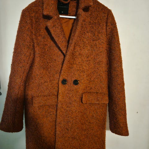 Fin kåpe i boucle stoff str M lengde 110 cm. Kjøpt i USA selges for kr 900,-