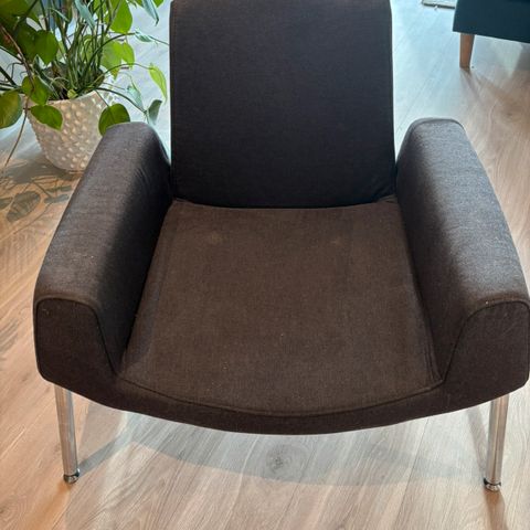 NY PRIS. To flotte Bolia Mono Lounge stoler i svart ekte skinn selges rimelig 500,- per stk. Stolene har ikke blitt brukt de siste årene. En flekk på den ene stolen, se bilde. Har kvittering.