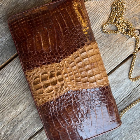 Slangeskinn veske selges for 825 kroner (høyde 15 cm / bredde 25,5 cm / dybde 8,5 cm. Prislappen er ikke tatt bort fra den ble kjøpt ny). K26. Fraktkostnader: PostNord - 69 kroner. Betaling via vipps.