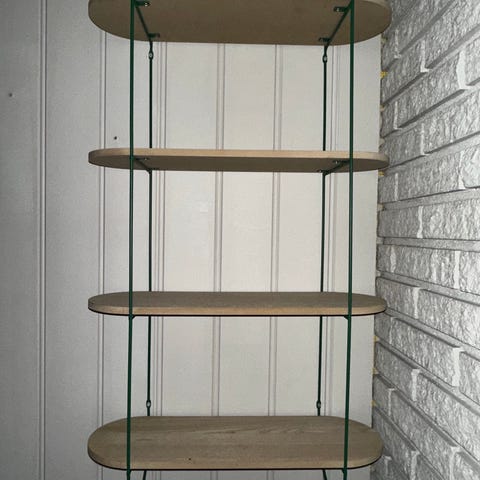 Pent brukt Billund bokhylle fra Jysk. 1 skuff 3 hyller betongfarget/hvit foliert. B80 x H160 x D33 cm
