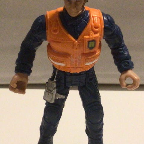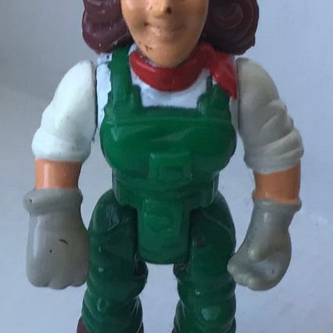 Figuren er 9,5 cm høy, og har bevegelige armer, ben og hode. Selges kr.30.-+kr.69.- postens porto.